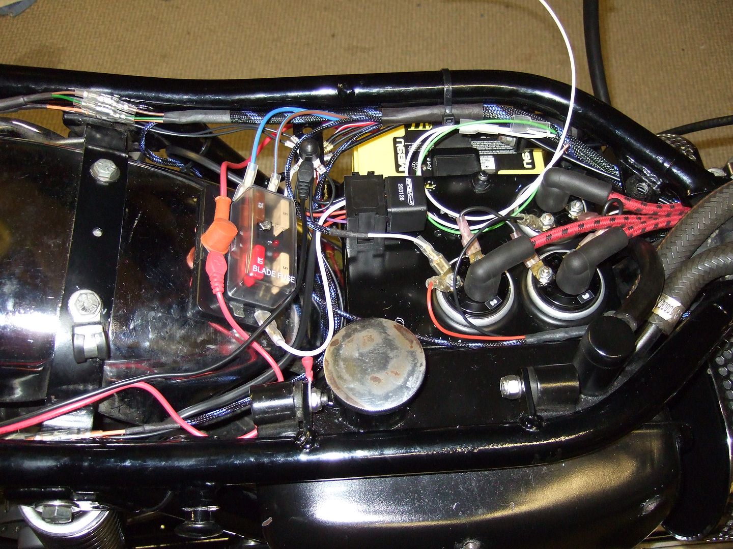 . Otoh, if I installed a separate supply direct from the battery to just the headlamp, incorporating relays for main and dip (the relays switched by the handlebar dipswitch), it could be fused to suit just the headlamp consumption, and remove a hefty current from the main loom components. :doublethumb